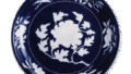 いわゆる古銅の薄端を模した花入で、柿右衛門様式の色絵としては他に類を見ない優麗な作振りであります。低く立ち上がった口縁の外側に、小さな擂座を十九個配して金彩を施し、まわりを赤の菊花で囲んで緑の唐草風の葉を添えるなど、きめの細やかな作為を示しています。細く引き締まった胴の中央には二条の浮線をめぐらし、上部から裾にかけて、三筋の流水に菊花と紅葉を散らしています。上絵はどの色も鮮やかに発色していますが、流水の薄瑠璃色は柿右衛門様式の色絵としては浅い色調で、鍋島のそれに近い。滑らかな白磁の素地膚はほのかに青味があり、やや広い高台畳付は露胎で赤味をおびています。作振りから推して元禄、享保の間に特別注文によって作製されたものと考えられます。
