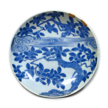 色絵 花木文 大皿 古九谷色絵 花木文 大皿 X Facebook はてブ LINE Pinterest コピー 2023.07.142024.01.24 色絵 花木文 大皿 Large dish with design of trees with blossoms, enamelled wareMouth diameter 38.1cm高さ7.6cm 口径38.1cm 高台径20.0cm 腰に段をつけた大皿で、見込に簡略な懸崖の樹木文をあらわし、まわりに蛸唐草をめぐらし、縁には梅花文を二輪ずつ七方に描いています。古九谷様式色絵としては簡素な図様であります。