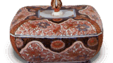 色絵 瓜文 大皿 古九谷色絵 瓜文 大皿 2023.07.242024.01.24 色絵 瓜文 大皿 Large dish with melon design, enamelled wareMouth diameter 35.3cm高さ7.7cm 口径35.3cm 高台径14.5cm 立ち上がりの浅い平らな大皿で、見込七角の枠どりの内に捻花文黒と黄で、くっきりとあらわされた瓜十個をおもしろく配列し、間に大振りの葉を散らしています。青手古九谷風でありますが、全面を塗りつぶさずに白素地を残していますので、かえって色彩が鮮明で、構図もおもしろく、印象的な作品であります。
