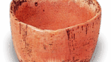 腰に段をつけた大皿で、見込に柏葉を一枚大振りに黄彩であらわし、枝を白抜きに、葉陰に鵲鴒一羽を地文とともに黒で描き、鮮やかな色調の緑釉をかけています。葉を主題にして、鳥を地文のなかに副題としてあらわしたところに、着想のおもしろみがあります。外側は一般の青手に見ます塗りつぶしではなく、二段の渦文を帯状にめぐらして黄釉をかけています。高台内に二重角福銘を書す。