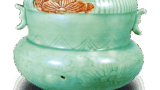 これらも前図同様、輪花中皿の優作でありますが、図132, 135は縁の花弁浮文を直線的に、図134は捻花風に作っています。また図133と図135の文様は繊細精緻な描写であり、縁に文様を配し、図134,135は裏面に松葉文を散らしています。
