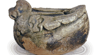 総じて伊賀は、強剛な形とビード自然釉の流れのあることが特徴とみられていますが、これは全体に釉枯れ、灰被の調子で、その中にも一部に窯くずれが付着して景色をなしています。
