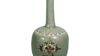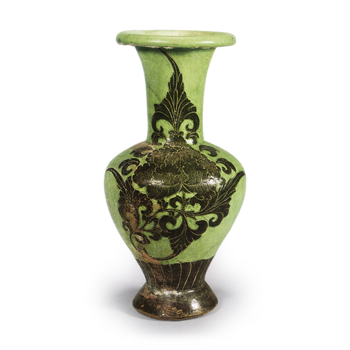 緑釉 黑搔落 牡丹文 瓶