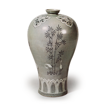 青磁象嵌竹鶴文梅瓶 高 29.2