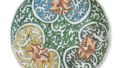 色絵 柳下 横臥 人物文 輪花 台鉢