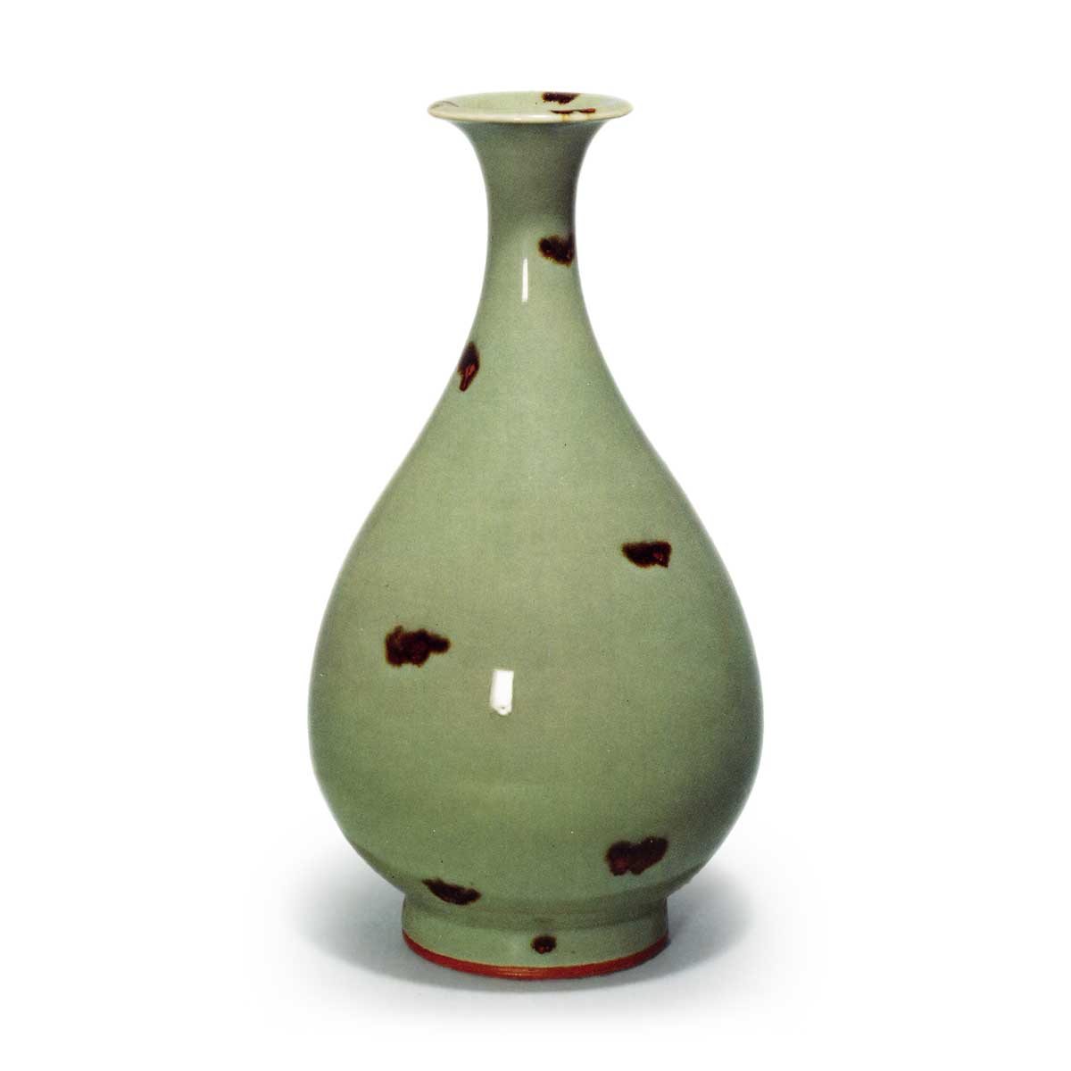 この釉は雑木の灰を成分とし、そこに含まれるわずかの鉄分が還元して青色を呈するのであります。中国ではすでに殷の時代にこの灰釉を掛けたやきものがつくられていますが、焼成が還元していないため釉色は鈍い草色にしかならなかったようです。その後周から漢にかけてこの灰釉陶は各地でつくられ、漢の末頃には浙江省紹興を中心にした越州地方が大生産地帯として台頭してくる。越州窯の勃興であります。越州でつくられた灰釉陶は釉調も整い、色も次第に草色から淡緑へと洗練されて青磁に近づいていきました。中国の古文献ではこれを青瓷という名で呼んでいますことが多く、高い評価を受けていたことが知られます。越州の青瓷は六朝中期には中原地方にも影響してそこに新たな窯を起こさせ、末から五代にかけて技術・意匠の一層の洗練をみ秘色青磁として高評を博し、のち翠色の美しいです青磁として完成されました。宋代に至って官窯・汝窯・耀州窯・竜泉窯などで完璧の青磁が製されたことは周知の通りで、やがてこの技術は近隣諸地域に流伝し、高麗・安南・タイに個性ある青磁が生まれた。