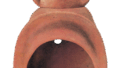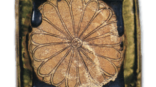 本器は五個の壺を上面の丸い三角状の環台に取りつけたもので、環台の一部に直径1.5cmの小孔が一個あります。壺には孔は穿たれていませんが、口頸部のつくりや銅の櫛目施文からみてであることはいうまでもありません。環台の小孔が五個ののそれをまとめて表わしているのでしょう。砂質の粗い土で、焼成はあまり堅くありません。