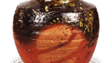 Haji ware: stem plate. Excavated at Yanagimoto-machi, Tenri-shi, Nara. 8th century. Height 8.9-9.6cm.Tokyo National Museum.