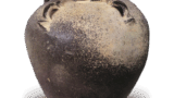 Haji warefooted jar with perforated holes.Excavated from Fudōdō Tumulus, Haibara-machi, Nara 7th century. Height 10.1cm. Nara PrefecturalArchaeological Museum.