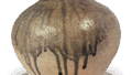 Haji ware dish with ink drawing of human face. Excavated on the ruins of Heijō Imperial Palace, Nara-shi, Nara. 9th century. Diameter 16.2cm.National Research Institute of Cultural Properties.Nara