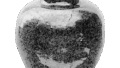 天目風の艶高い黒褐色に覆われ、しかも肩釉濃く、ほかは薄く、禾目状の窯変が随所に現れよい景色となっています。