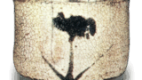 特徴はその釉景にあり、総体に柿金気釉地の上に黒飴釉と黄釉が入り交わりつつ飛雲のように随所にかかり、その中で一カ所特に黄釉が勝ち、甑際から釉際まで流れ下がって、裾で濃くなり光沢を増して置形をななめせんうたかたしています。