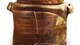 Sue ware: stem bowl. Excavated from Futamata No. 1 Tumulus, Kami Ishizu-mura, Gifu 6th century. Height 12.8cm. University of Nagoya.