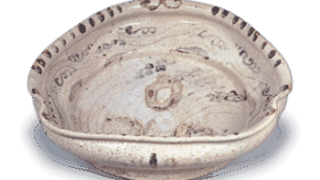 Ninsei: kembyo (small standing screen on writer’s desk) in the shape ofa peony flower, white glazeHeight 13.1cm Hatakeyama Kinenkan Museum