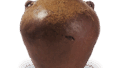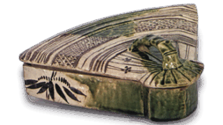 瀬戸釉臼水指 仁清瀬戸釉臼水指 X Facebook はてブ LINE Pinterest コピー 2023.12.24 瀬戸釉臼水指 Ninsei: water jar in the shape of a mortar, Seto glazeHeight 15.6cm高さ15.6cm 口径11.2~12.1cm 底径10.9cm 仁清の水指には異形のものが多いが、これは挽臼を意匠化した水指である。筒形の胴の左右に大きな把手をつけ、内部から外側にかけて瀬戸釉がたっぷりとかかっているが、釉は黒くむらが生じて景色をなしている。胴裾から平らな底にかけては土見せで、底の左方に仁清の大印が捺されている。