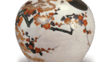 Ninsei: water jar of sakin-bukuro (alluvial gold bag) form with lion knob,white glazeHeight 13.8cm Yuki Museum of Art