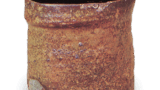 銹絵染付春蘭図茶碗 乾山銹絵染付春蘭図茶碗 2023.11.21 銹絵染付春蘭図茶碗 高さ7.4cm 口径10.4cm 高台径5.4cm 腰から口縁にかけて、春蘭の絵を奔放に描いていますが、染付は薄く、銹絵は濃くあらわしています。裏面には 「夕風生遠思 乾山省昼(書)(花押)」と詩賛を書しています。