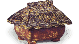 Kenzan: incense caddy with egg-plant design, underglaze brown andblueMouth diameter 6.8cm
