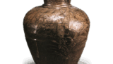 白化粧地の上に鉄絵具と呉須で芒文様をあらわし、透明釉をかけて焼き上げた後、一部に緑の釉を加えた織部焼の風を写した蓋茶碗ですが、織部焼とは異なって乾山独特の京風の味わいのものになっています。土見せの高台内の 楕円枠内の白化粧地に 「乾山」 の銘を書し、透明釉をかけています。これもかつて五客揃っていたものです。