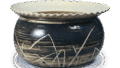 胴の長い短頸壺の古式に属するものです。中央の光った扁平な紐をもつ蓋は裾拡がりで、肩にまだ沈線を残しており、身もすでに平底ながら、肩から胸にかけてまるく、8世紀前半代の作と考えるべきでしょう。素地は灰色で、焼成温度はさほど高くなく、瓦器質に近いです。しかし、薄手の整然としたつくりの壺です。
