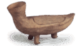 口径4.7cm 胴径10.0×16.0cm 広島大学考古学研究室ある種の瓶の胴部を変形させたいわゆる鳥形瓶は5世紀後半と7世紀の二時期に出現します。前者はの胴を変形させたものであり、全国的に散見します。後者は平瓶の胴を変形させ、口頸部を鳥の頭に見たてたもので、6世紀末以降、中国地方とくに広島県下から多く発見されています。本器は両側と尾部に扁平な粘土板を貼りつけ、羽を表現しています。そして、上面および胸に当たる部分に描きの綾杉文を施し、鳥毛を表しています。