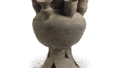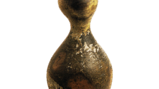 Sue ware: tall-foot plate with sculptured ornament. Excavated from Hachiman-yama Tumulus, Mori, Wakayama-shi, Wakayama. 6th century. HeightDōshisha University.