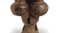 蓋の紐に隠をとりつけた装飾壺の一種です。の胴には孔がなく、単に飾りとしてつくられたものです。壺は三角形の三段四方透かしをもった高い台脚に短頸壺を載せたもので、肩および台脚に櫛目波状文が施されています。器体は灰色の緻密な素地で、轆轤技術もすぐれており、整然とした形をしています。