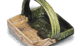 縁帯の狭い形の壺を三個連ね、台脚で支えた装飾壺の一種です。壺には孔はなく、口頸部および肩に沈線と櫛目波状文を施しています。台脚は壺を支える透かしをもった鉢形の下に、二段三万千鳥透かしをもった裾拡がりの脚がついています。やや砂質気味の素地であるが薄手の精作で、よく焼き締まり、肩に暗緑色の自然釉が流れています。