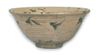 従来類例をみない珍しい形態のものです。高さ4mmの高台をも小円盤の上に円筒形のものをつけた、一種の托ともいうべきものです。円筒部外面に緑黄白三彩を、他の外面には緑釉を、裏には白釉を施しています。白色の素地で軟陶質です。