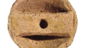 口径3.2cmの無頸の小壺で、肩の両側に小把手の剥離した痕があある。白色の素地で、内外面とも淡緑釉を施しています。他に類例がなく、用途不明です。