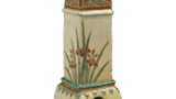 Green glazed ware bowl with floral design. Excavated on the ruins of Tagajō-ji, Tagajō-shi, Miyagi. 10th century. Diameter 20.3cm. Tagajō MunicipalEducational Commission.