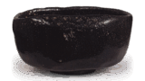 名古屋市東部の丘陵上から多数の瓦や須恵器 灰釉陶器とともに発見されたもので、遺跡は小堂宇の焼失した跡と考えられます。同所から本器のような三足盤が三箇体分出土しています。素地は黄白色のやや硬いもので、削りによる低い脚があります。釉は内面中央に四弁花文を、周囲に花弁の一部と花頭文、飛雲文を濃緑釉で描き、上から全面に白釉を施したもので、焼けただれて文様は黒く変色しています。素地・釉調からみて猿投窯鳴海地区の製品と考えられますが、珍しい作品です。