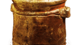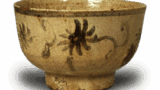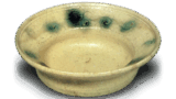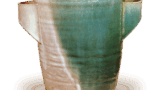 Registered as Important Cultural Property. Jishō-in.Ash glaze pottery: jar with three handles. Excavated from the graveyard of Kannon-ji, Kyoto-shi. 11th century. Height 19.2cm.