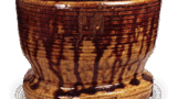 染付葡萄栗鼠文大鉢 古伊万里染付葡萄栗鼠文大鉢 2012.07.172023.10.11 染付葡萄栗鼠文大鉢 高さ11.6㎝ 口径46.6㎝ 底径17.3㎝ 口を鐔状にした大振りの鉢ですが、初期の染付大鉢に比して全体に作振りが薄手で、高台の作りも異なります。おそらくは時代の降った作品でしょう。しかし、見込にあらわされた山葡萄に一尾の栗鼠を配した図は、のびのびとして筆触柔らかく、この種の大鉢としては他に例を見ない鮮やかなものです。裏面には三方に飛雲文様を配し、高台内に「大明」の文字が染付で書されている。