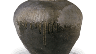 肩に稜をつけ、高台のやや高い器形もよく均衡を保ち、ふくらみに張りがあって力強い。
