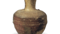 Ash glaze pottery tall-neck jar. Excavated from Kurozasa No.7 Ceramic Kiln, Tōgō-machi, Aichi. 8th century. Height 19.0cm. Honda Collection.