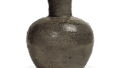 Ash glaze pottery: tall-neck jar. Excavated at Tenjinzuka, Iwakura-shi, Aichi. 9th century. Height 22.3cm. Ichinomiya Municipal EducationalCommission.