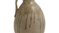 扁平な把手をもった徳利形の瓶は中国陶磁の影響を受けて9世紀代の猿投窯に出現したものです。まず円形の底板をつくり、胴部を轆轤で挽き上げたもので、初期のものほど胴のふくらみが大きい。