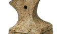 手捏ねと削りによって形を整えたもので、仏像を表現しようとしたものでしょう。右手を前に出し、左手に持っているのは水瓶であろう。黒笹8号窯から多数の陶塔片が出ており、軸部第一層内面の一部に取りつけられていたものでしょうか。
