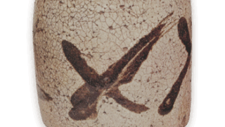 腰がべったりと地に着くようなこういう半筒形は、美濃の瀬戸黒や志野に見られるものですが、それと直接のつながりがあるかどうか断言はできないようです。