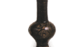Seto ware: flower vase with stamped ornament, iron glaze. 14th century. Excavated from Hyakume Ceramic Kiln, Kamamoto-cho, Seto-shi, Aichi. Height 23.0cm.