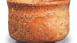 尊式仏花瓶の別の一類 さきの一類よりはやや遅れて出現したらしい。扁平な太い口頭部など、さきの仏花瓶を誇張させたものですが、異型品という以上に、その後室町時代を通じて焼かれており、決して珍しいものではありません。