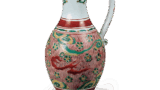 腰のしまった広口を小形にした珍しい合子です。0.5cmの短口頭部、胴に太い丸彫りによる縦位の沈線を設けた姿はあたかも文酒会を小形にしたように見受けられます。灰白色の素地で水挽き成形です。蓋は直径6.7cmあり、通有な合子の蓋と同じつくりで、裏面に直径2.2cmの突起があります。上面には中央に環状の紐をおき、その両側に、紐に向かって手足を拡げ、伏した姿の二匹の猿を貼り付けています。余白には小さい菊印花文を両側に二箇所、三個ずつ組み合わせて押しています。鉄釉は茶褐色の光沢ある安定した釉質のもので、凹部の軸だまりは黒褐色を呈し、変化に富んだものとなっています。