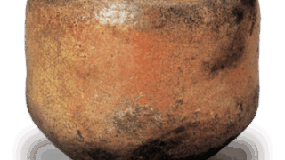天目茶碗はいうまでもなく、禅林における喫茶の風習に対応して鎌倉末ごろから瀬戸において製作され始めました。初期のそれは建蓋をまねた口径に対して丈の高い、腰のふくらみの少ないものがつくられ、高台でした。釉薬は黒褐色の不安定なものでしたが、室町時代に入って古瀬戸軸が完成される頃、形の上にも少しずつ変化が生じています。