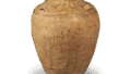 Seto ware: jar with four handles, ash glaze. Excavated from the ruins of sutra mound at Daian-cho, Mie. 14th century. Height 26.5cm. Mie Prefectural