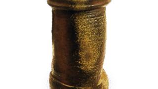 内領する小さい口頭部と裾ひろがりの高い台脚をもった瓶子は室町時代に入って新たに出現した器種の一つです。釉薬には灰釉と鉄釉の両者があります。この子はその初期のもので、水挽き 成形で、頸部肩に牡丹の貼り台脚の三段につくりわけています。