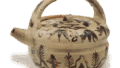 唐津 皮鯨 ぐいのみ 唐津唐津 皮鯨 ぐいのみ X Facebook はてブ LINE Pinterest コピー 2013.09.062024.01.25 唐津 皮鯨 ぐいのみ 高さ5.5cm 口径7.2cm 高台径3.2cmまろやかに腰が張り、口を端反りにした厚作りのぐいのみで、高台内は浅くまるく削り、 畳付は片薄、 高台内には縮緬皺が細かくできています。 口まわりに濃くくっきりと黒釉をかけ、 胴には長石釉をかけていますが、 黒釉が一筋流れ、 一部露胎の腰に飛釉がかかるなど景色豊かな珍しいぐいのみです。 小森谷窯の作と推測されているます。