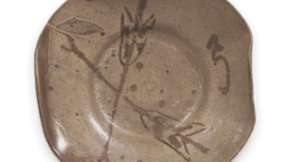 平底の一般的な形の水です。口縁のつくりは二重口縁 水の口づくりとしては少ない方です。文様は印花手法で、肩の上縁に花弁を 胴の中央に単純な唐草文を縫らしています。灰釉は長石分を増しかなり安定したものになっていて、やや暗緑色を呈し、一部分白化しています。