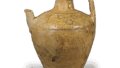 Seto ware: ewer with handle with stamped ornament, ash glaze. 14th century. Height 13.5cm.