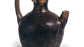 Seto ware: ewre with handle with stamped ornament, iron glaze. 14th century. Height 17.3cm. Aichi Prefectural Ceramic Museum.